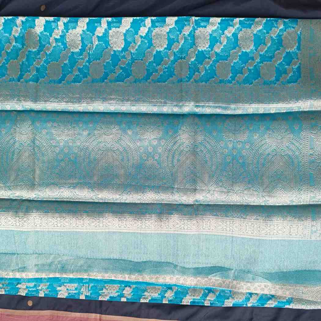 - Color: Elegant Blue with golden zari.