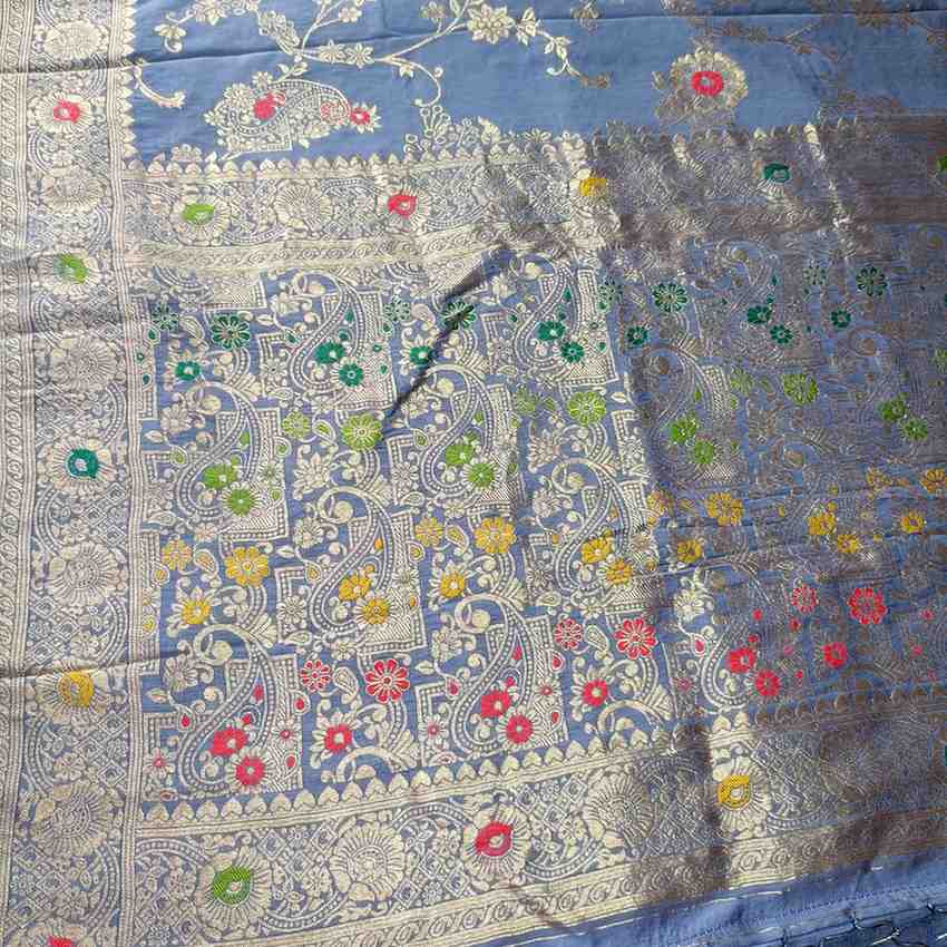 Grey Mango Box Meenakari Banarasi Viscose Saree from Vastranayani