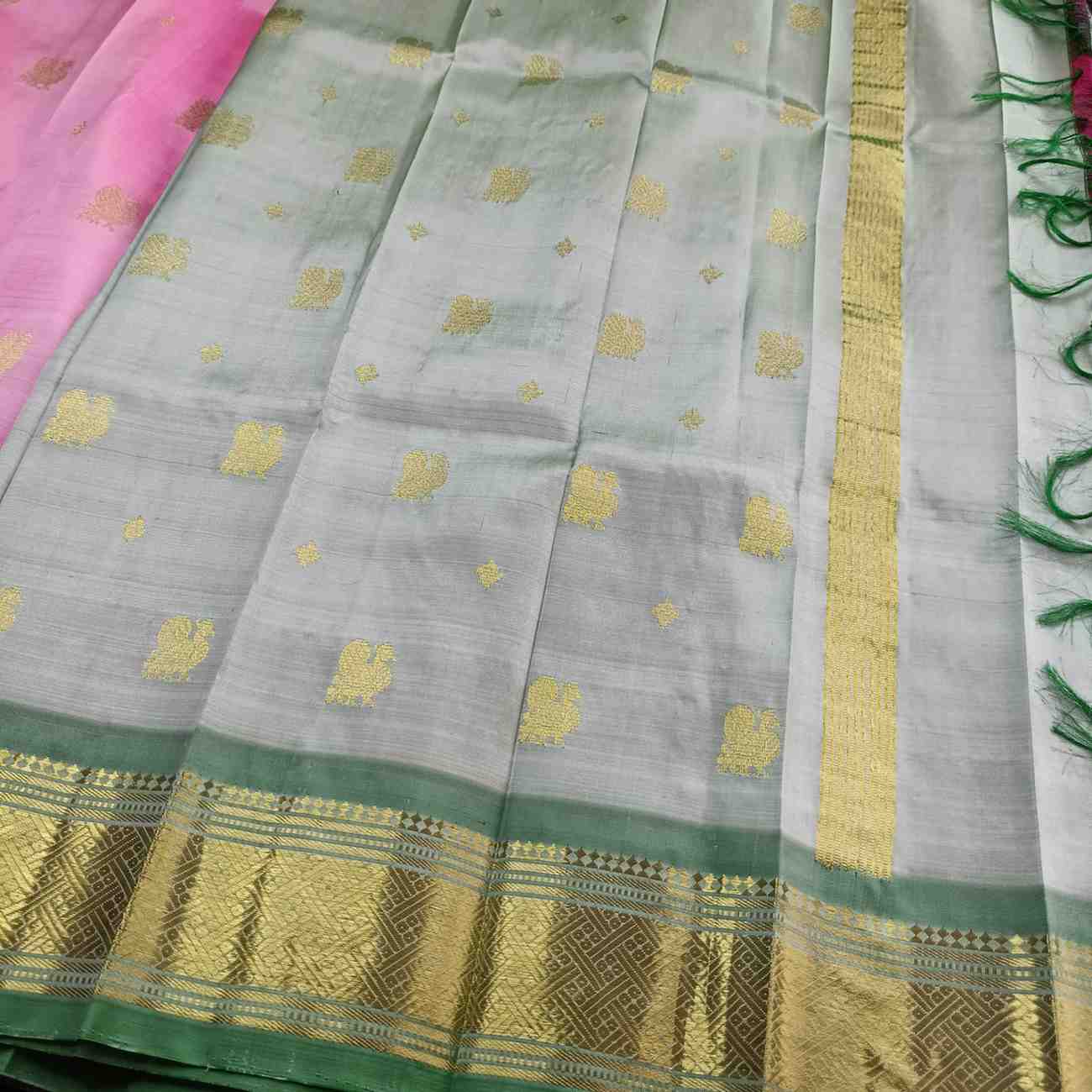 Pure Handloom Pink Thirubhuvanam Silk Saree - Annapakshi
